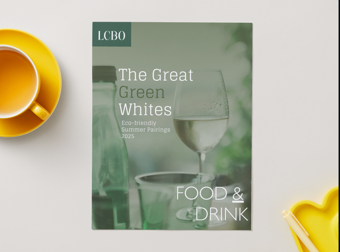 Cover for LCBO's Food & Drink Magazine, Summer' 25 Issue featuring eco-friendly white wines.