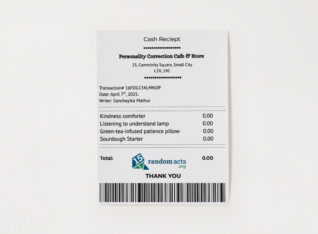 A fun till-receipt concept for Random Acts to remind people that some of the most wholesome things in life are actually free.